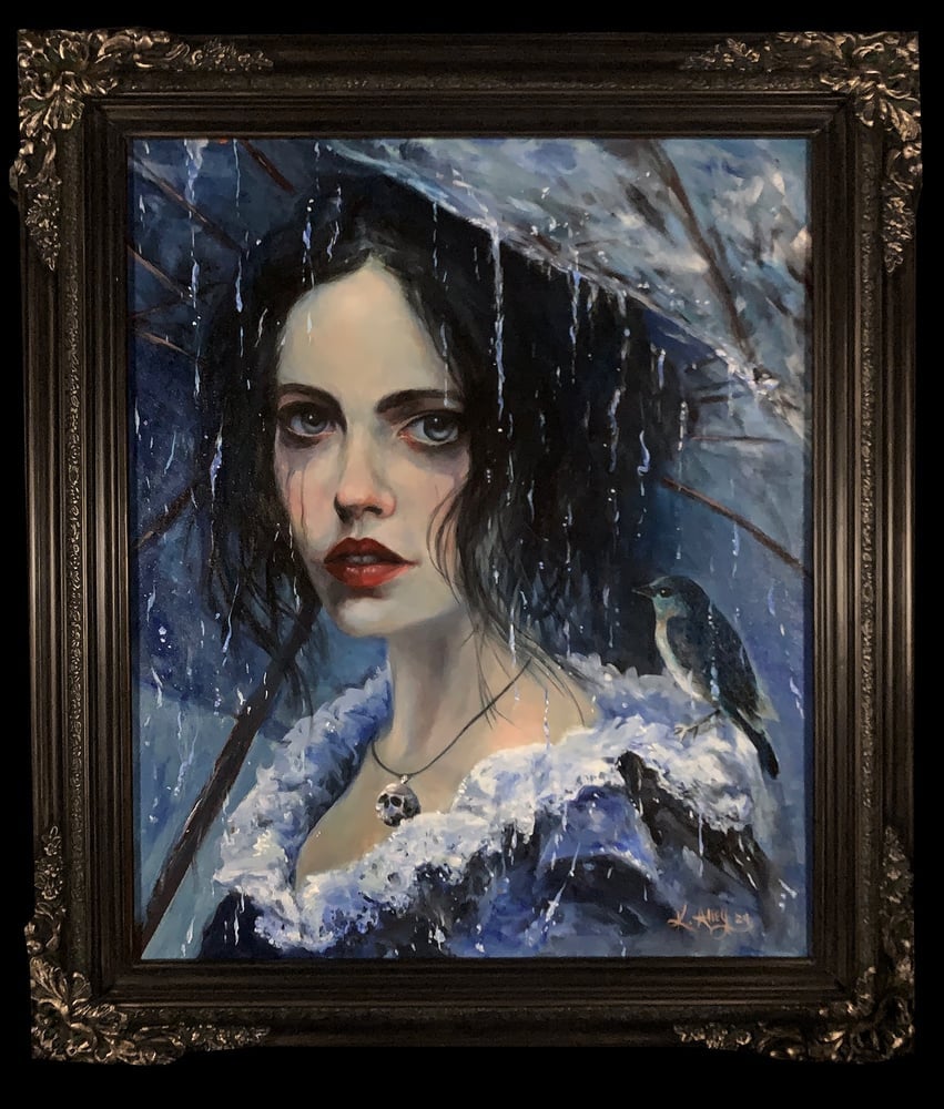 "Blue Refuge" Original oil on canvas 24x30". Jan 2024. Gallery wrapped/painted 3/4" edges. Choose with or without frame. Measures 31x 37"