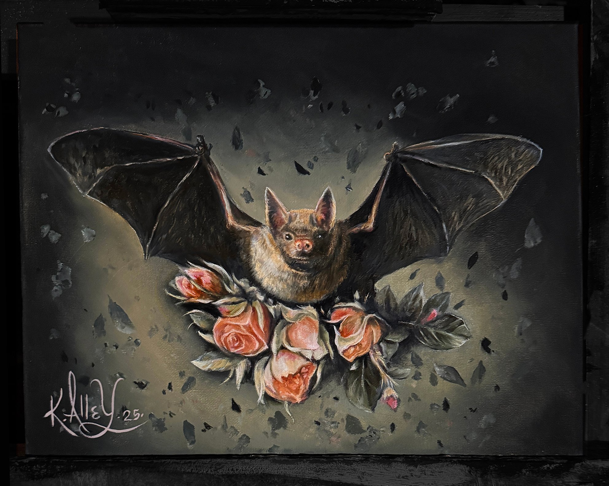 "Irma Vep" Original oil on canvas 11x14". October 2025. Painted canvas edges for hanging unframed. Also available framed, see photo #2. Measures approx 18x21" with frame. Ships insured USA only.